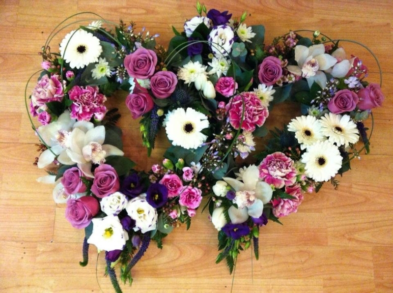 A beautiful double open heart made from in the the freshest seasonal flowers created in a colour scheme of your choice.